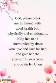 A sweet prayer for my girlfriend focused on health and protection shows deep care and concern for her well-being. It reflects your desire to see her safe, healthy, and happy in every moment. This kind of prayer is especially important in times of stress or uncertainty. It provides reassurance and emotional comfort that strengthens your bond. Praying for her health also shows that your love goes beyond emotional connection. It reflects genuine concern for her physical and mental well-being. This thoughtful gesture can bring peace of mind and create a sense of security. Over time, such prayers build a strong and caring relationship. Your girlfriend will feel truly valued and protected.