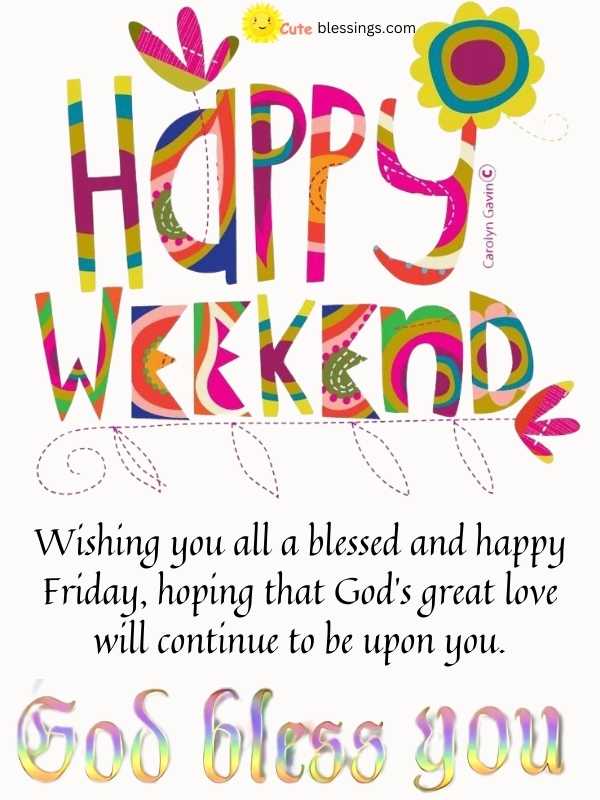 - For a close friend with humor: The funny options in “Happy Weekend Friday Blessings” work well.